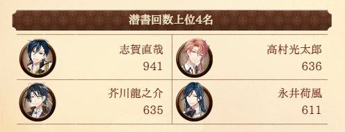 11.尾l崎(徳l田) 12.新l美(織l田) 13.石l川(中l原) 14.谷l崎(徳l田) 15.田l山(芥l川)